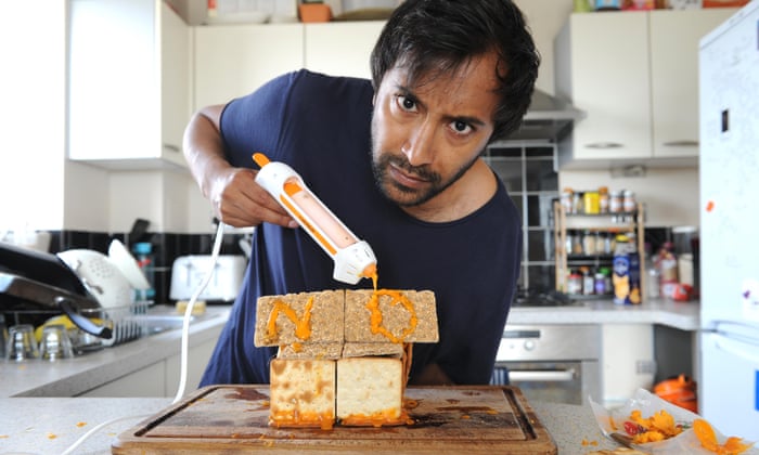 I’m looking at it right now, and I still don’t know what it is. First impressions are that it resembles one of those “pump up your junk” home devices that, once Googled, will be advertised to you for ever (#apparently #whoknows #notme). I push the cartridge through a block of red leicester – like taking a punch biopsy – then return it to the gun, and plug in to heat. The process “works” with any cheese – I pull the trigger and orange discharge wriggles forth on to Ryvita, where I write my name in coagulating fat. Then I draw some boobs, and then I’m out of ideas. Actively trying to doodle defeats the point, whatever the point of doodling with cheese is in the first place.